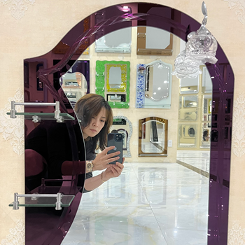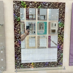 Specchio elegante elegante da bagno di lusso con struttura in cristallo con struttura in vetro senza rame decorazione murale per trucco